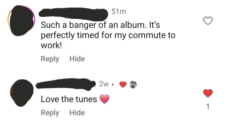 I'm glad you asked! Here are some 100% real, organic comments I've gotten from strangers on social media about the album - take their word for it: